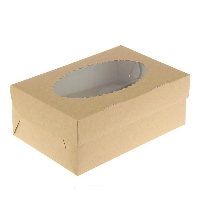Коробка с окошком крафтовая на 2 капкейка (25шт)